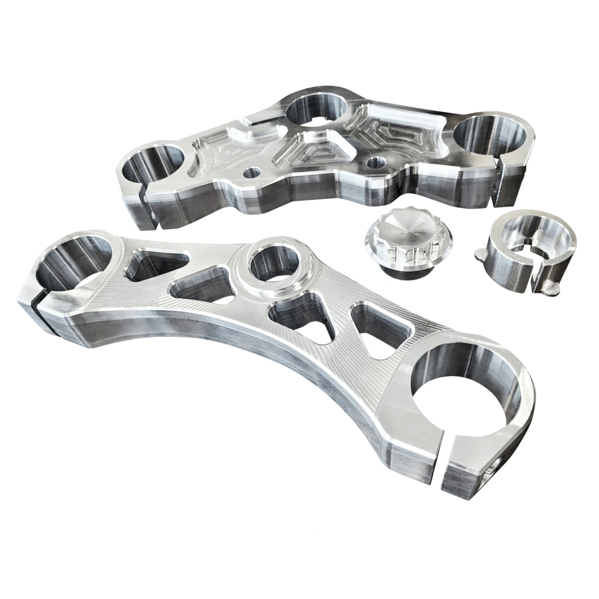 These triple trees are specifically engineered to enable the upgrade from a 41mm fork tube to a 49mm fork tube.