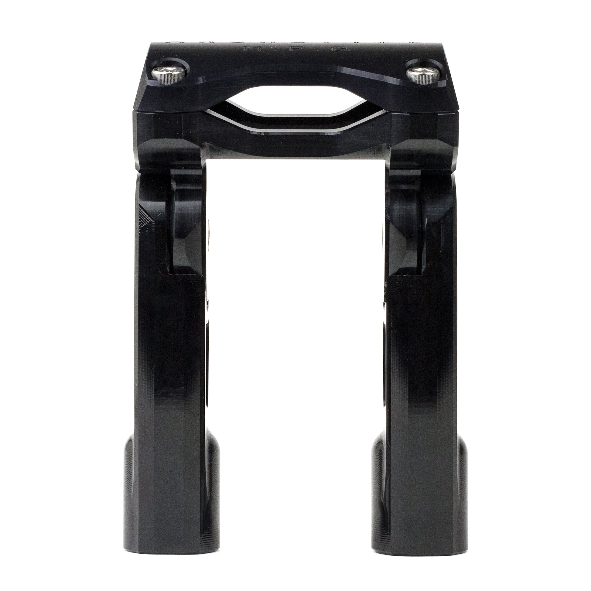 Crafted from high-grade 6061-T6 aluminum, The Opie Riser offers exceptional durability while maintaining a lightweight profile. Its one-piece cradle design and slimmer legs provide a robust structure capable of withstanding the stresses of aggressive riding. Once installed, it functions as a solid fixture riser, with a clamping area over three times stronger than standard requirements, ensuring a secure and reliable connection between the handlebars and the motorcycle.